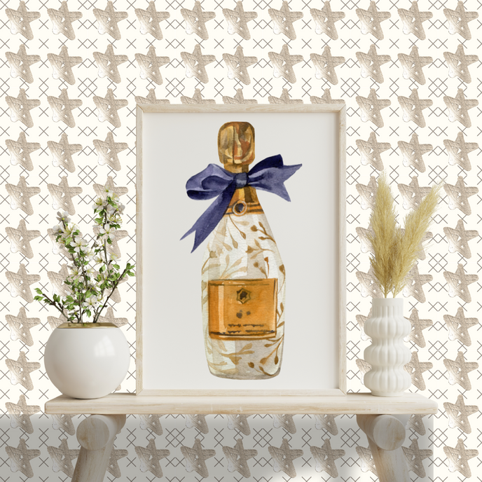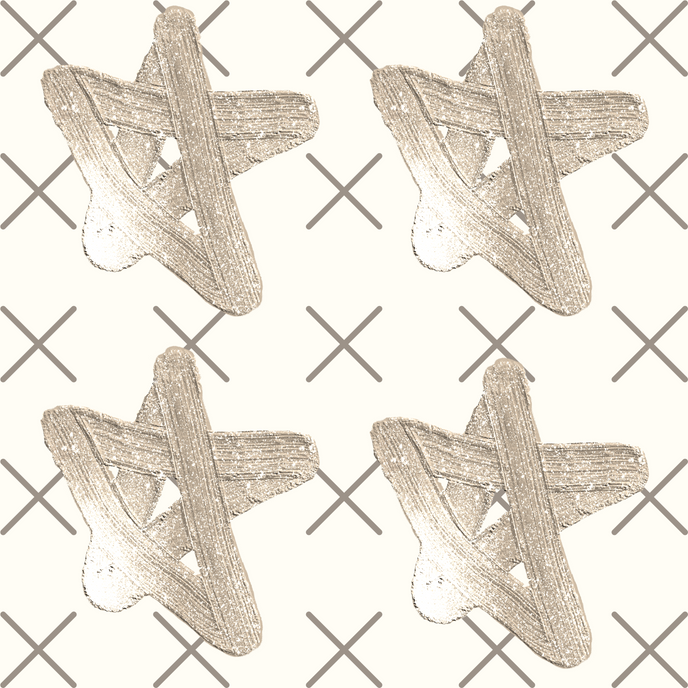 Say hello to Nova, a stargazer’s dream rendered in brushstrokes. Star Script features painterly, hand-drawn stars layered over a soft grid of neutral X’s—giving the feeling of doodles in the margins of a dream journal. This print balances whimsy and structure, sparkle and softness, to create something truly timeless.